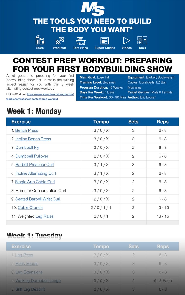 (Click Through To Download Full FREE PDF!) A lot goes into preparing for your first #bodybuilding show. Let us make the training aspect easier for you with this 3 week alternating contest prep workout: https://muscle.ms/FirstShow pic.twitter.com/6BnERME9Ya