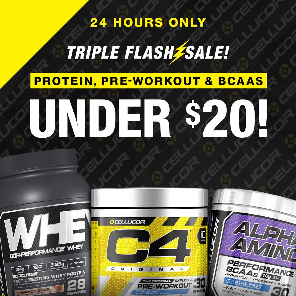 PSSST! Looking for some protein, pre-workout, and BCAA deals under $20? You’ve come to the right place - these 3 @Cellucor products are on sale for the next 24hrs, so get them while you can: https://muscle.ms/CellucorSale-3 pic.twitter.com/bigMc2FOoI
